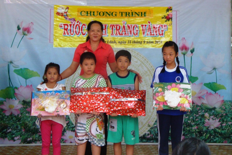 đ/c Huỳnh Hoa Hiếu Hạnh - P. Chủ tịchCông đoàn LĐLĐ Tỉnh phát thưởng cho các em