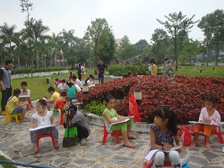 Quang cảnh các em đang vẽ