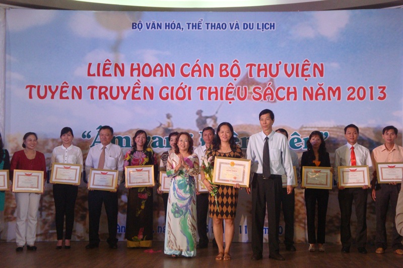 Bà Nguyễn Thị Thanh Mai - Vụ trưởng Vụ Thư viện Trao giải giải xuất sắc cho Thư viện tỉnh Đồng Tháp