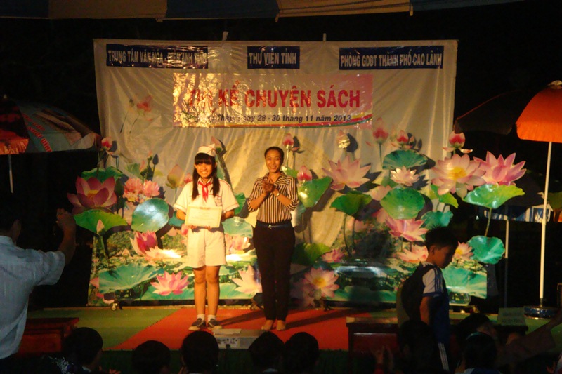 Bà Trần Thị Mỹ Trinh – P.Giám đốc Thư viện trao giải B Trường THCS Kim Hồng