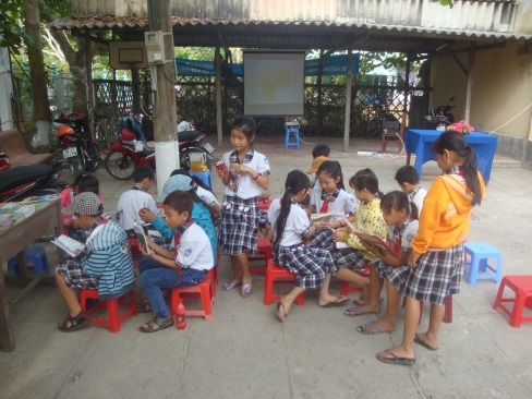 trao quà cho các em đạt giải Thi vui đọc sách – Quà trao tay